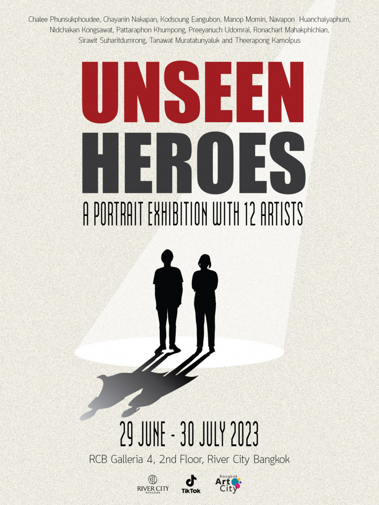 This exhibition features a group of 12 artists, including Chalee Phunsukphoudee, Chayanin Nakapan, Kodsoung Eangubon, Manop Momin, Navapon Huanchaiyaphum, Nidchakan Kongsawat, Pattaraphon Khumpong, Preeyanuch Udomrai, Ronachart Mahakphichian, Sirawit Suharitdumrong, Tanawat Muratatunyaluk, and Theerapong Kamolpus. They have come together to portray portraits of unseen heroes from various fields, capturing their essence and significance.